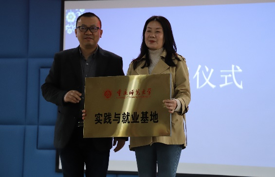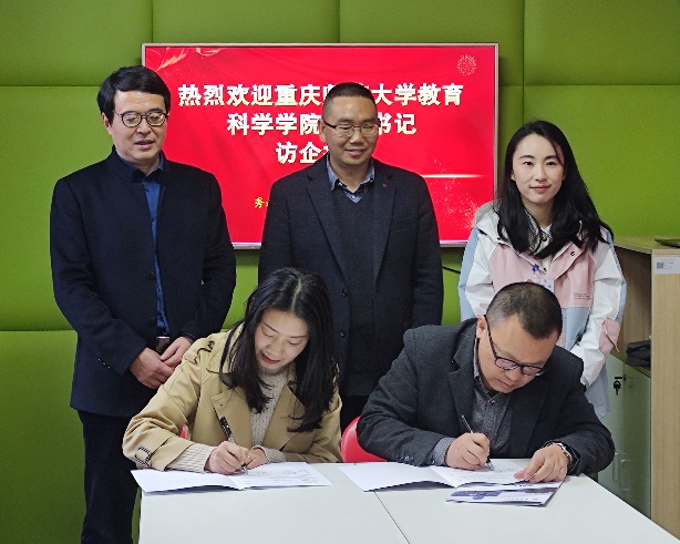 座谈结束后,罗庆书记与杨瑜园长签署了《重庆师范大学实践与就业基地协议书》,并授予馨园幼儿园“重庆师范大学实践与就业基地”牌匾。