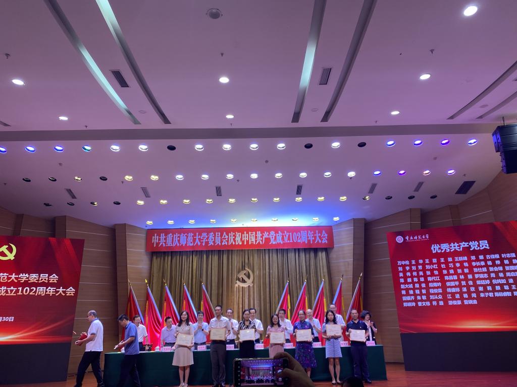 2023年6月30日下午,中共重庆师范大学委员会在校友会堂音乐厅隆重举行庆祝中国共产党成立102周年大会,对学校先进基层党组织、优秀共产党员和优秀党务工作者进行表彰。VR彩票