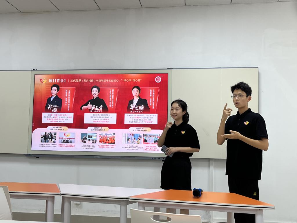 国家一流专业——特殊教育专业及西部首个听障高等教育办学点,历经三代传承,打造了西南地区首个手语翻译志愿服务团队,成立至今十三年来为聋人提供高质量、高评价的手语翻译服务,面对不同人群开展多次手语培训活动,致力于将残健共融的理念传递到社会的每一个角落。
