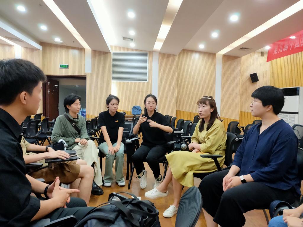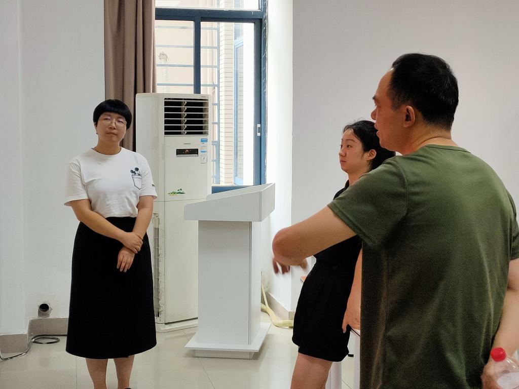 图为专家张庆朋老师及项目指导老师杨逐、梁玉音为项目提供指导