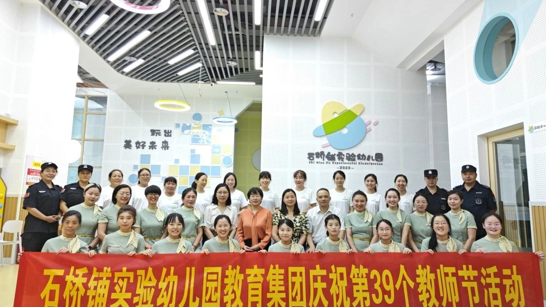 领导和教师与石桥铺实验幼儿园的全园教职员工一起共同庆祝第39个教师节。