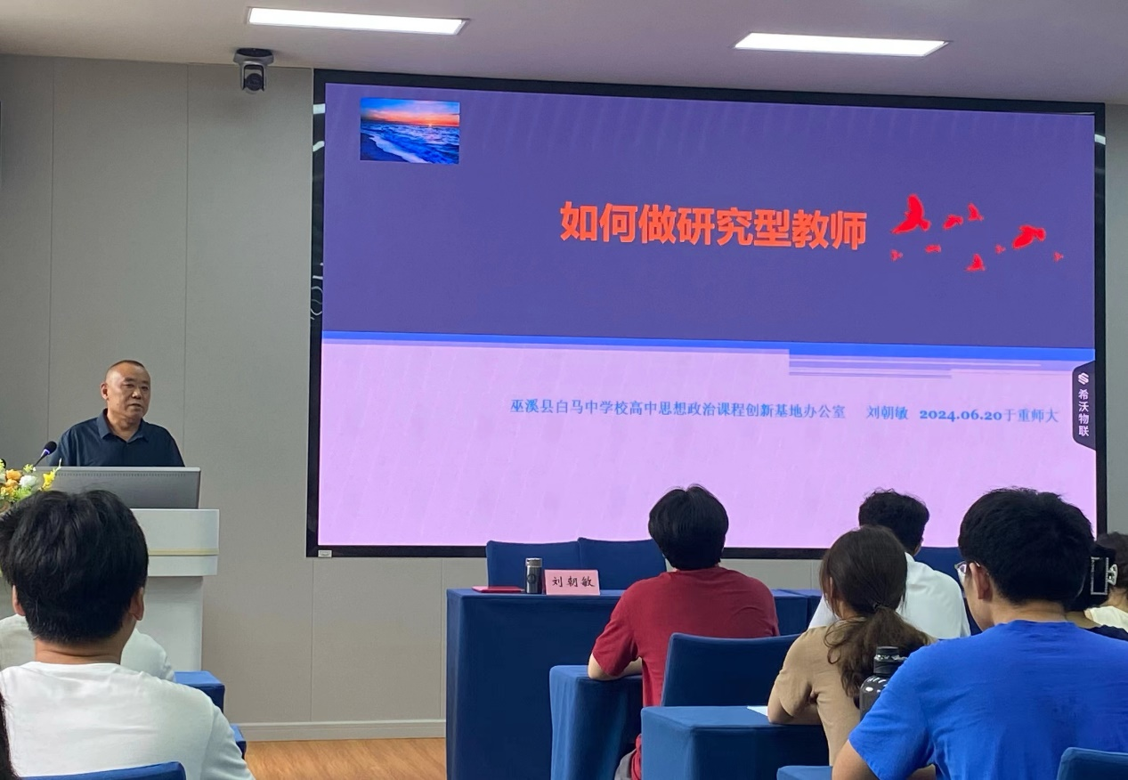 刘朝敏老师从当前一线教师的科研现状作为出发点,以“如何做研究型教师”为主题展开讲座。论述了为什么要成为一名研究型教师、研究型教师应具备的品质、以及研究型教师的成长路径。围绕以上主题刘老师认为教师作为一种具有较强专业性的职业应该有更高的价值追求和专业素养,成为研究型教师是为了加快推进教育现代化,建设教育强国的需要和自我实现的需要。研究型教师应当要培养批判精神、反思习惯、证据意识和善于总结的优秀品质。刘老师还总结了教师发展的路径,为同学们分析了研究能力对于教师专业发展的重要性以及教师进行课题研究的范式。