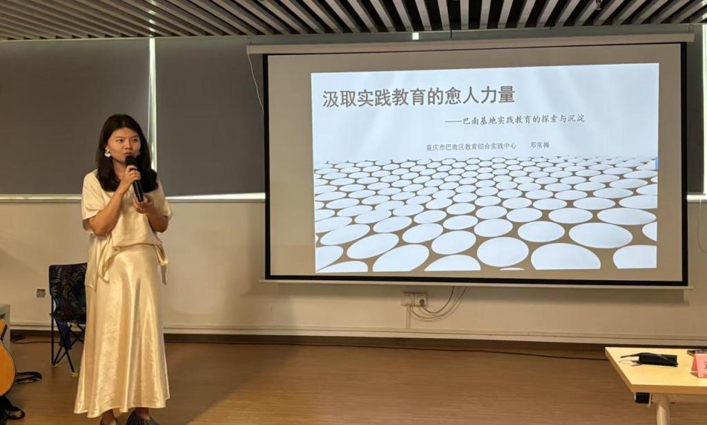 实践基地代表、重庆市巴南区教育综合实践中心主任邓常梅老师以《汲取实践教育的愈人力量》为主题,介绍了实践教育在厌学青少年成长中的独特价值,她倡导利用实践基地资源,为青少年提供体验、学习与成长的平台,通过“兴趣潜能挖掘”模式激发青少年的学习动力。