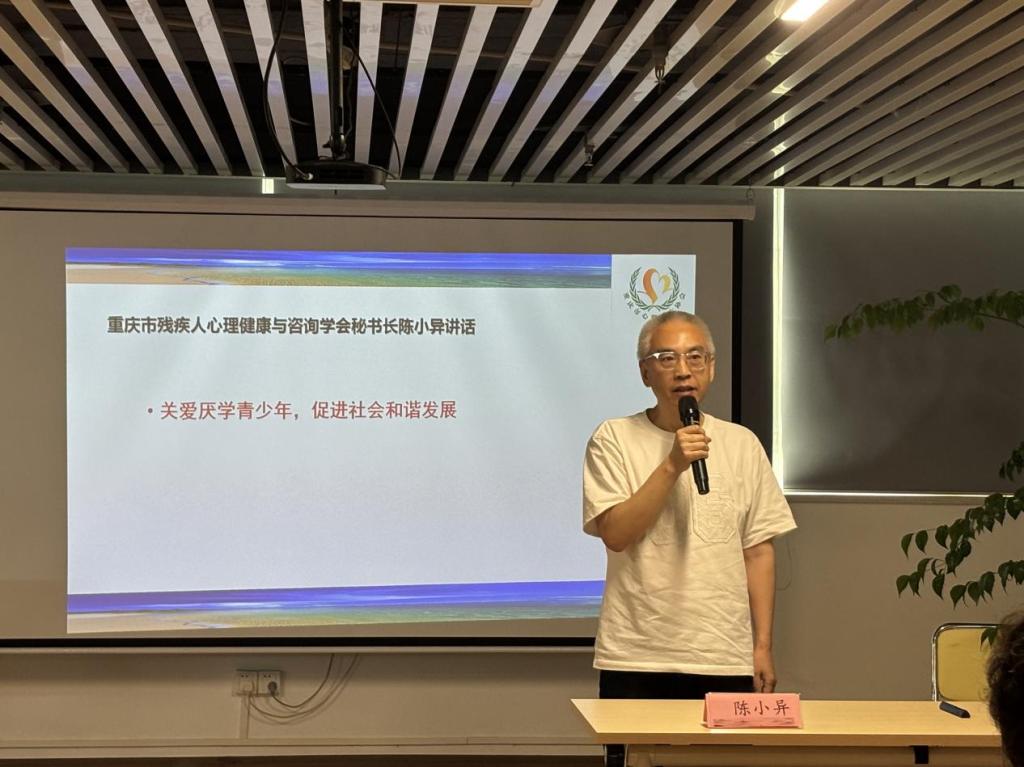 重庆市残疾人心理健康与咨询学会秘书长、重庆师范大学陈小异教授在致辞中指出,青少年心理健康问题也是重庆市残疾人心理健康与咨询学会关注的领域之一。他强调,青少年厌学受多方面因素影响,呼吁家长改变教育理念,尊重孩子兴趣。在数智化时代背景下,相关机构可以利用AI技术辅助教育。