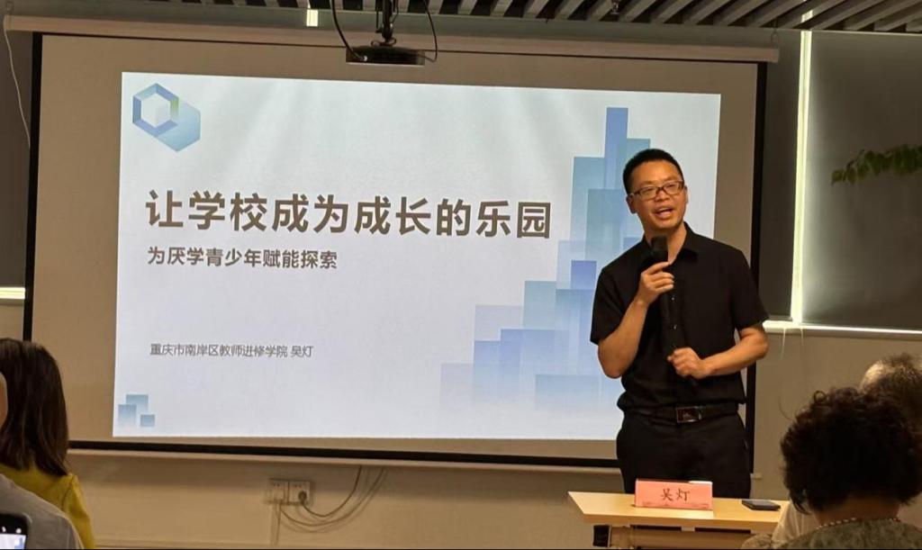教研员吴灯老师以《厌学之学校策略》为主题,分享了当前学校教育在应对厌学问题上的策略与探索,包括课程设置、教学方法、考核方式的改进等,为学校教育提供了新的思路。