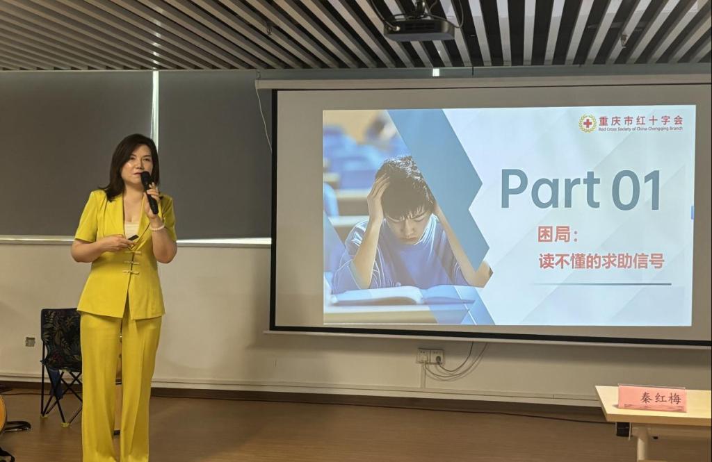 作为公益组织的代表,重庆市红十字会组织宣传外联部部长、重庆市未成年人心理健康工作联盟协调组副组长、重庆市红十字心理健康志愿服务队秦红梅老师以《微光成炬,重启生命灯塔》为主题,分享了公益组织在厌学青少年干预中的多种服务形式及其独特作用。秦红梅强调,厌学青少年往往面临多重关系的挑战,需要社会各界共同努力,通过利他行为激发他们的内心动力,促进他们成长。
