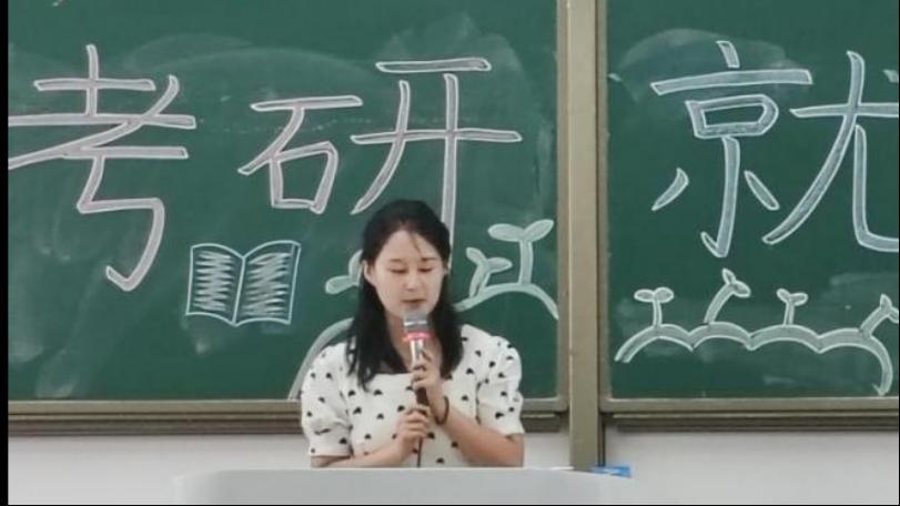 刘素婧学姐,讲述了她跨考的心路历程与备考经验,她详细介绍了各科分数分配,以及每个科目的复习时间。她鼓励学弟学妹们:“考研是一场持久战,保持坚定的信息和科学的方法,就一定能抵达理想彼岸。”
