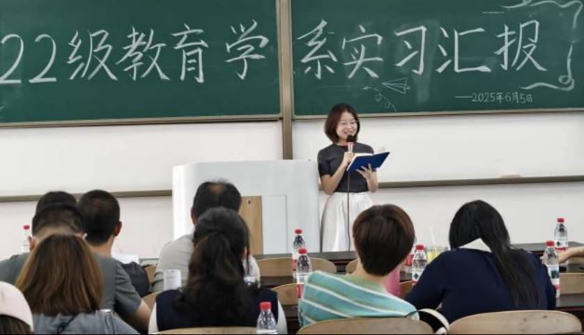 为深化师范生实践育人成效,展现教育实习成果,2022级教育学专业及教育技术学专业实习总结汇报大会于2025年6月5日在特教楼进行。谷小燕、胡娜、李金臻等教育系全体实习指导教师莅临指导,22级教育系全体学生参与,23级与24级学生到场观摩。