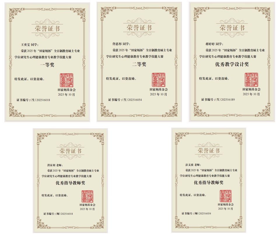 心理健康教育专业硕士学位研究生王奕雯、佟思彤、蒋婷婷在大赛中表现优异,最终斩获一等奖1项、二等奖1项及优秀教学设计奖1项的佳绩。