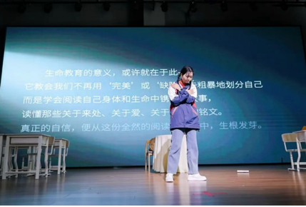 研究生团队展演了自编自演的心理情景剧《胎记》,得到与会嘉宾和师生的广泛好评。该剧主要讲述了初中生小美因手臂胎记自卑,遭同学嘲笑后迁怒母亲,而母亲以自身妊娠纹开导,称胎记是“爱的徽章”帮小美解开心结,接纳自己。该剧表达了接纳自身 “不同”、拥抱完整自我的主题,也展现了母爱以理解与共情化解孩子心结,帮助孩子在他人目光中建立自信,发现 “缺陷” 背后独特意义的力量,化解青少年自我认同的常见困惑,传递出尊重生命、珍爱自我的深刻生命教育理念。
