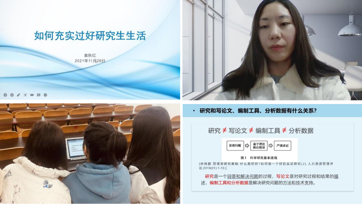 此次专题讲座的开展,有助于倡导研究生合理安排学习和生活,夯实专业基础与提高综合素质。学术研究任重而道远,通过袁秋红博士对研究生生活的细致分享,希望同学们在今后的学习生活中能够树立正确的人生目标并增强职业规划意识,实现自我增值。