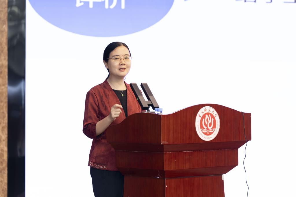 博雅楼504会议厅以《学业评价改革中的教师转变》为题作主旨报告。曾文婕教授在2022年新课标落地实施的大背景下对学业评价改革进行了分析。