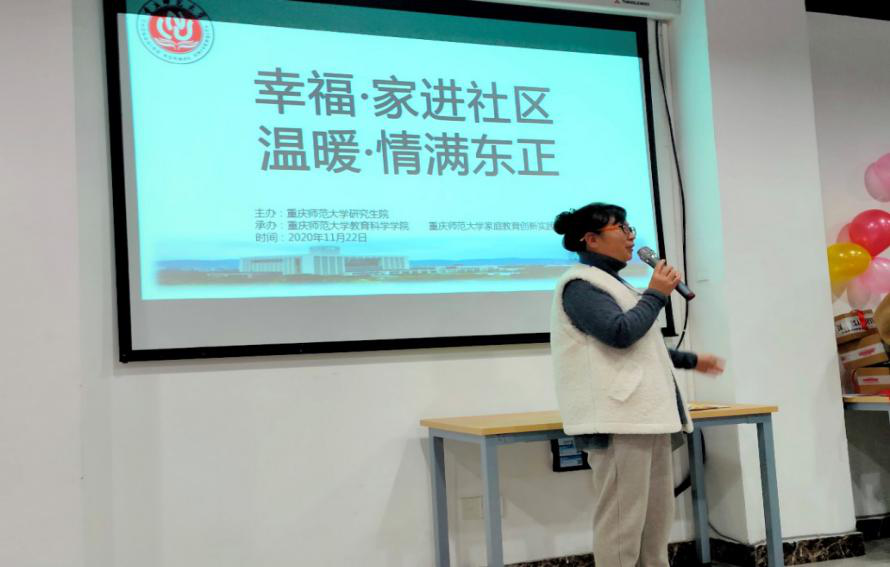 郭老师、东正社区程书记以及梅明社会工作服务中心梅明老师的帮助与支持下顺利开展,同时,活动受到了东正社区居民们的热烈欢迎。程书记充分肯定了家庭教育创新实践团队活动的创新性、实践性,对重庆师范大学研究生的专业能力与风采给予了高度的评价,并向实践团队表示感谢。