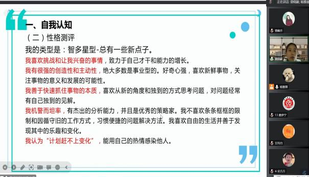 参赛选手分别从自我认知、职业认知、职业决策、计划与路径、自我监控等方面精彩地展示了各自团队的职业规划方案,参赛团队方案设计特点鲜明、风采各异、逻辑清晰,紧跟时代节奏,把握发展脉搏,充分展示了VR彩票