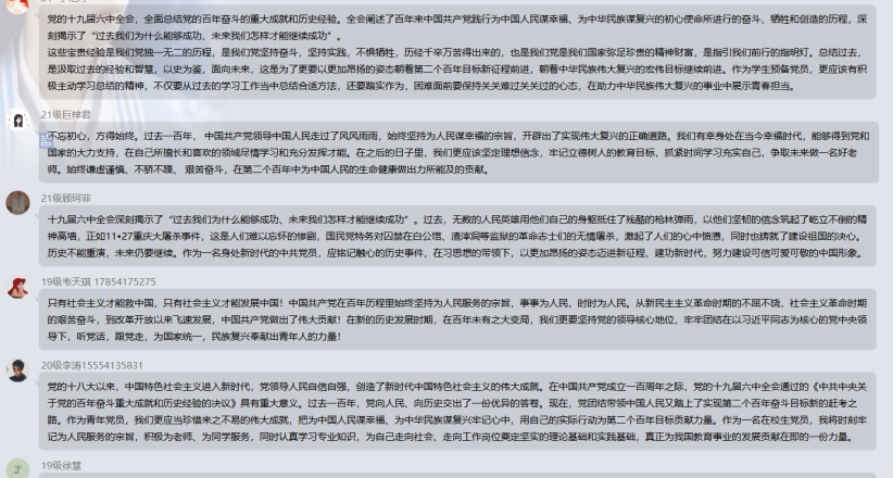 会议结束后,各党员分别分享了自己关于学习党的十九届六中全会精神的学习心得并表达了对学习“一一二七重庆大屠杀”的深刻感悟,表示会践行全心全意为人民服务的宗旨,勇于担当、尽职尽责。以饱满的热情投身于各项工作,为中华民族伟大复兴事业增添青春能量。