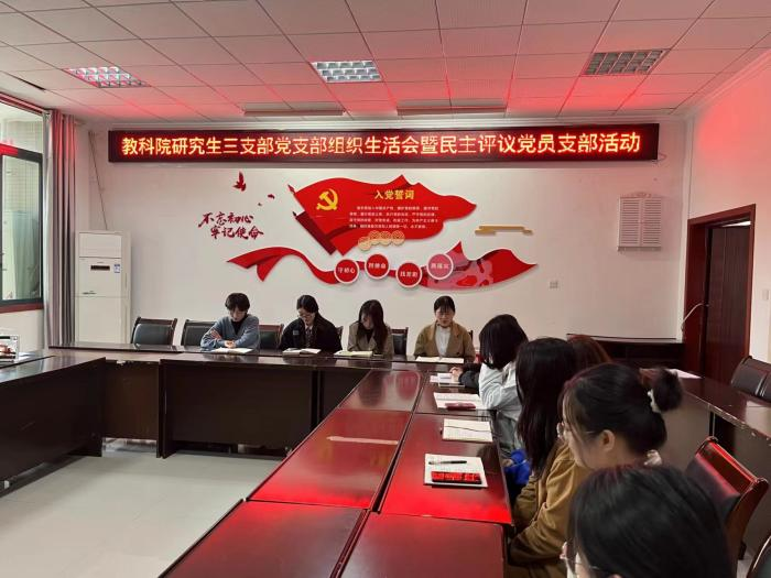 研究生三支部于励志楼2421召开党组织生活会,开展民主评议党员工作。会议由宣传委员万佳佳同志主持,支部全体党员以线上线下相结合的方式参会。