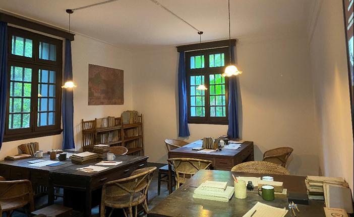 参观完红岩革命纪念馆,党员同志们走过一段历史沉淀的石板路来到了中共中央南方局和八路军驻重庆办事处旧址,这里也是抗战时期中国共产党在国民党统治区的指挥中心。周恩来、董必武、林伯渠、昊玉章、叶剑英、王若飞、邓颖超等老一辈无产阶级革命家曾在此生活工作,历时8年,为抗战胜利作出了卓越贡献。跟随讲解员的步伐,同志们进入这栋隐蔽的楼房内仔细参观革命先辈们曾办公、生活的地方。