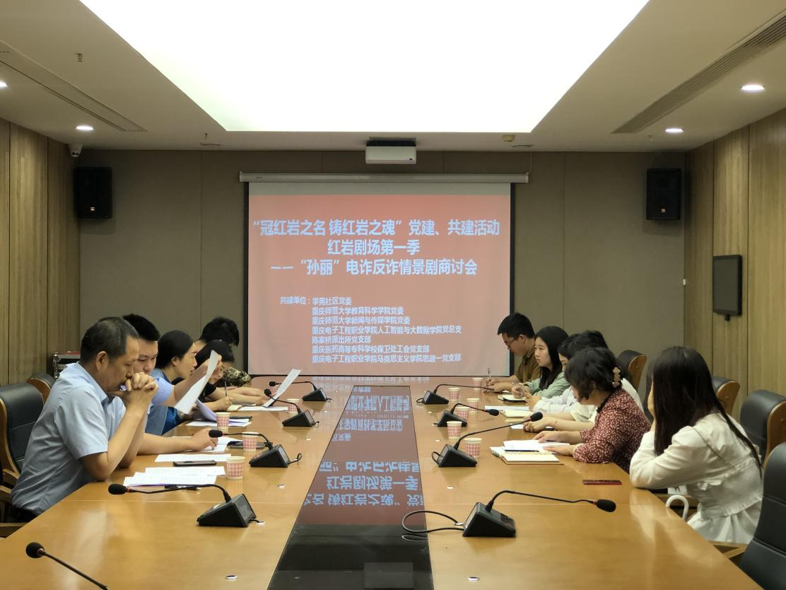 6月1日上午10点,重庆市沙坪坝区学苑社区在陈家桥街道党群服务中心组织召开了“冠红岩之名 铸红岩之魂”党建、共建活动,红岩剧场第一季——“孙丽”电诈反诈情景剧商讨会。由学苑社区党委主持,重庆师范大学VR彩票