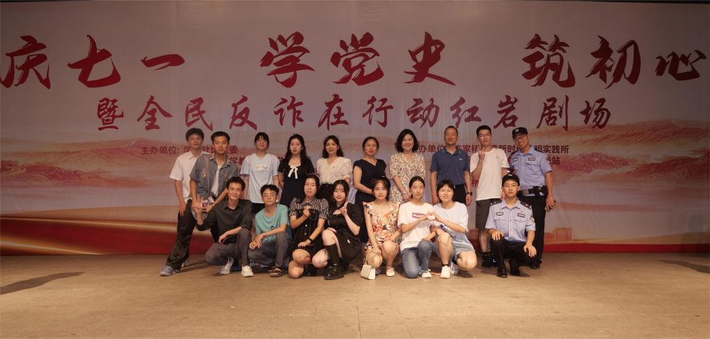 师生贺子宸、陈雯、陈霞、彭诗琪深度参与创作。演出非常成功,赢得观众一阵阵热烈的掌声。陈家桥派出所所长潘登表示:“反诈宣传十分受重视。近年被骗案例频发,如何有效宣传反诈提高人们的警惕意识是十分重要的。《孙丽反诈宣传情景剧》的成功对提高社区居民的警惕性有非常重大的意义,一切黑暗势力终将被打败。”学苑社区罗秀玲书记对演出效果给予了充分肯定,并表示下学期将继续合作开发一系列新的反诈宣传剧。