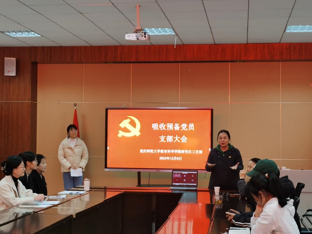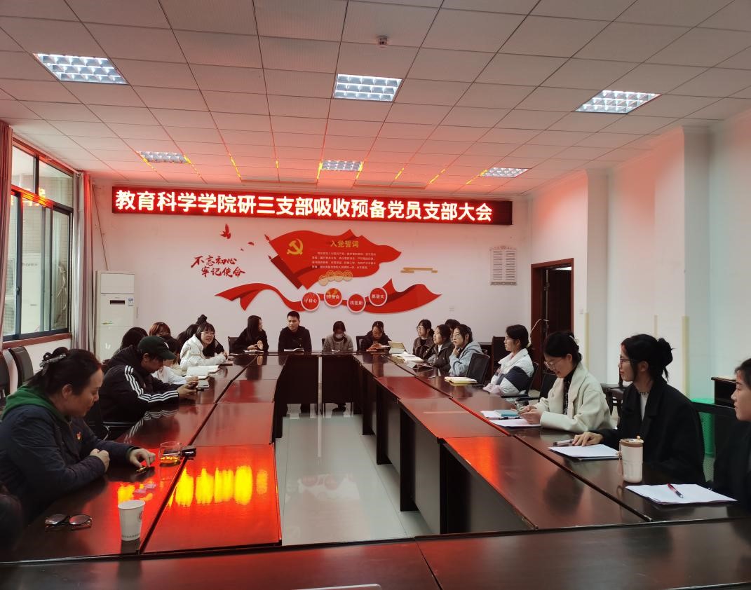 研究生三支部于特教楼2421召开吸收预备党员支部大会。本次大会的主要内容为讨论元振丽、傅红理、黄嘉欣3名同志是否发展为中共预备党员的问题。VR彩票
