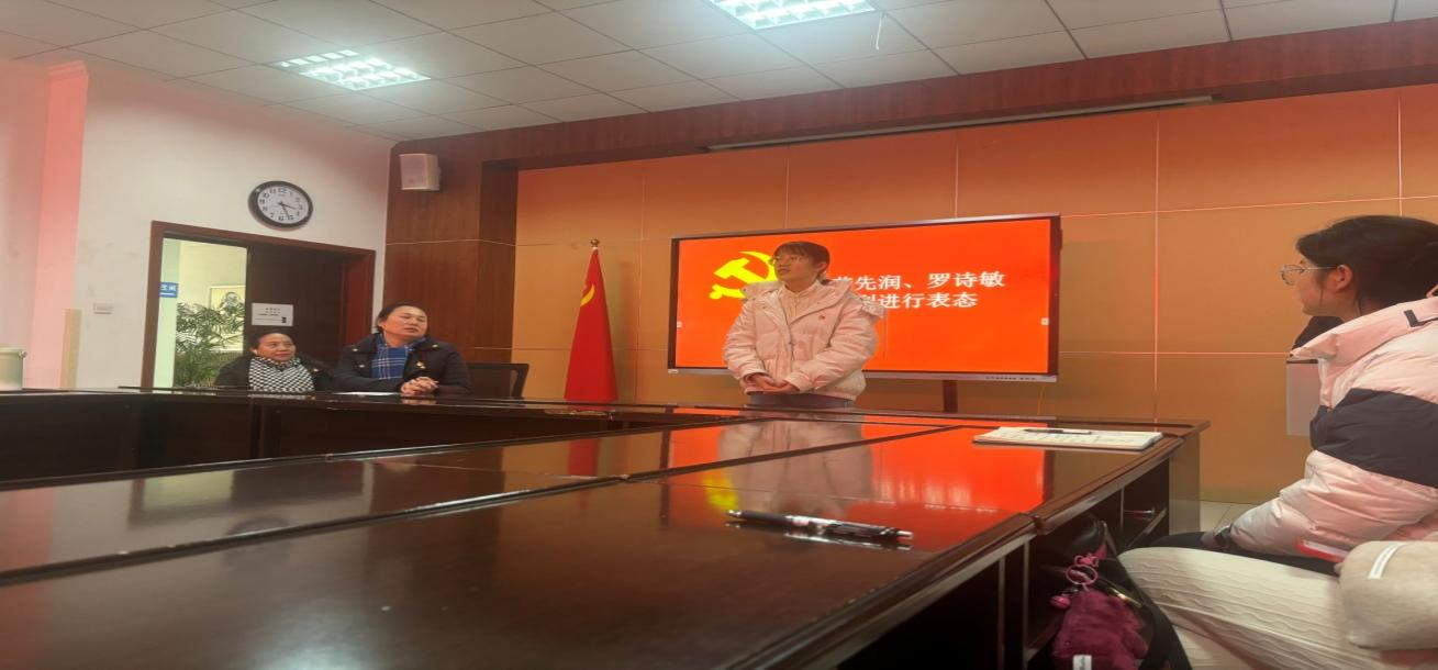 随后,与会党员综合考量两名预备党员在预备期的思想、工作和学习等表现情况,在会上就两名同志能否转正进行充分讨论。经过支部大会正式党员逐一的无记名投票,一致同意艾先润、罗诗敏同志按期转为中共正式党员。艾先润、罗诗敏同志分别上台表态,表明自己今后的努力方向。
