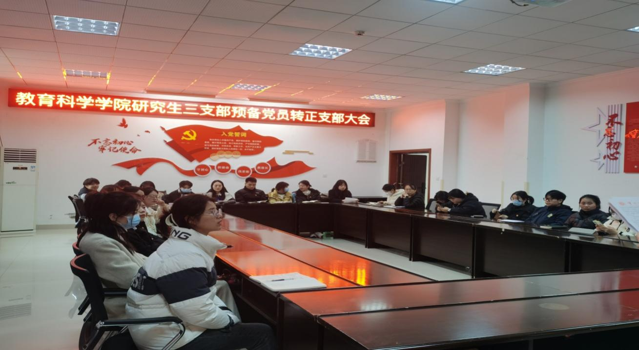 研究生三支部在砺志楼T2421召开预备党员转正支部大会。会议由翁瑾同志主持,三支部全体党员参与本次大会。
