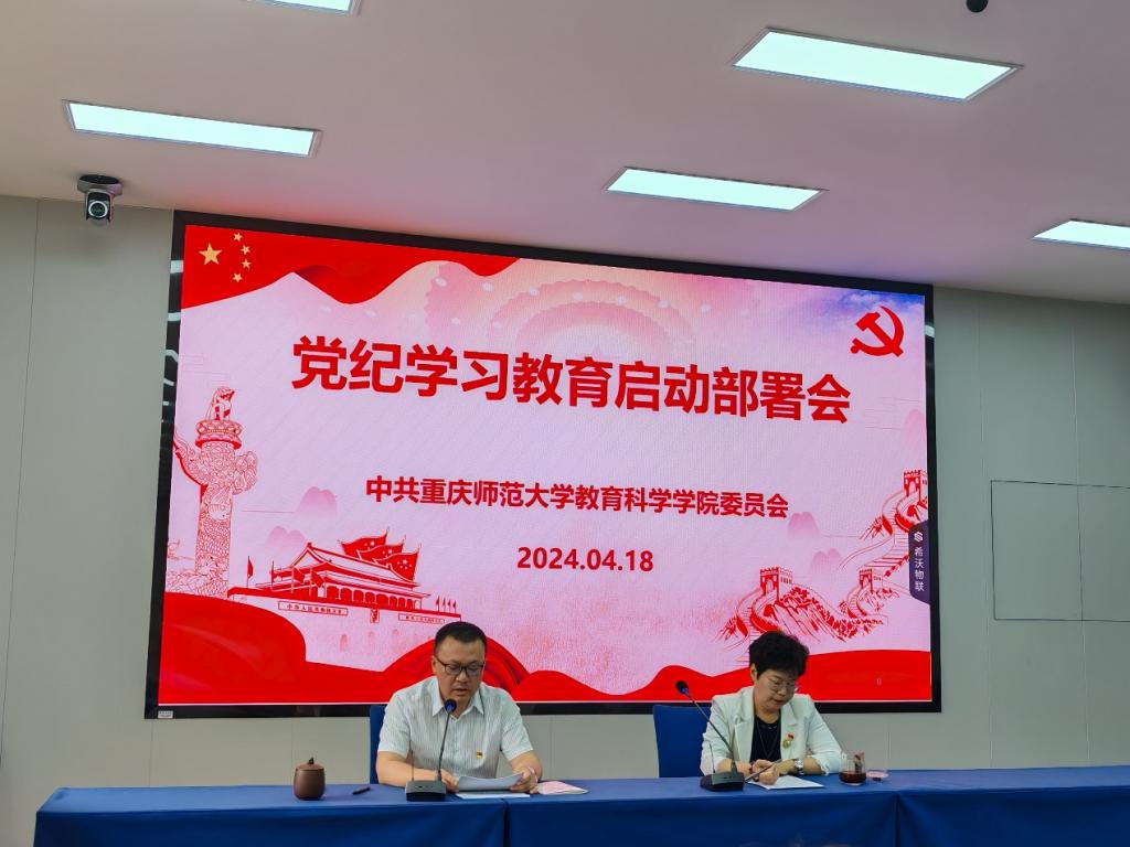 自学校召开全校党纪学习教育专题部署会后,VR彩票 党委高度重视,从上至下做出具体安排。VR彩票 党委于4月18日下午在T2222及时召开VR彩票 党纪学习教育启动部署会,传达学校党纪学习教育专题部署会会议精神及学校党委印发的《关于在全校开展党纪学习教育的实施方案》相关要求。会议由VR彩票 党委副书记、院长朱桂琴主持,VR彩票 党委书记罗庆做动员部署讲话,全院党员师生参加会议。