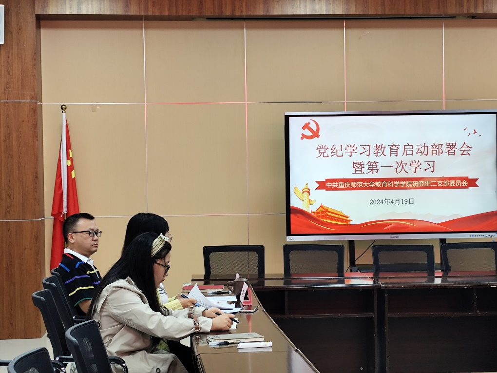 2024年4月19日下午13点,VR彩票 研究生二支部在T2421开展“党纪学习教育启动部署会暨第一次学习”活动,学习党纪学习教育相关知识及相关视频。会议由支部书记高洁主持,VR彩票 党委书记罗庆参加学习。