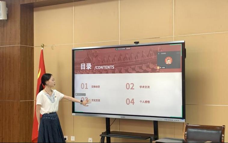 王紫娟同志对自己在台湾交换学习一学期的情况进行汇报。她详细介绍了台湾东部的文化以及台湾特殊教育事业的发展情况,王紫娟同志表示在台湾的一学期收获颇多,同时也认识到两岸同胞刻在血脉里的共通性,两岸统一是大势所趋、人心所向。